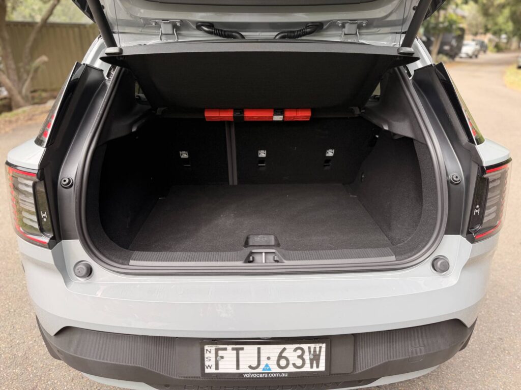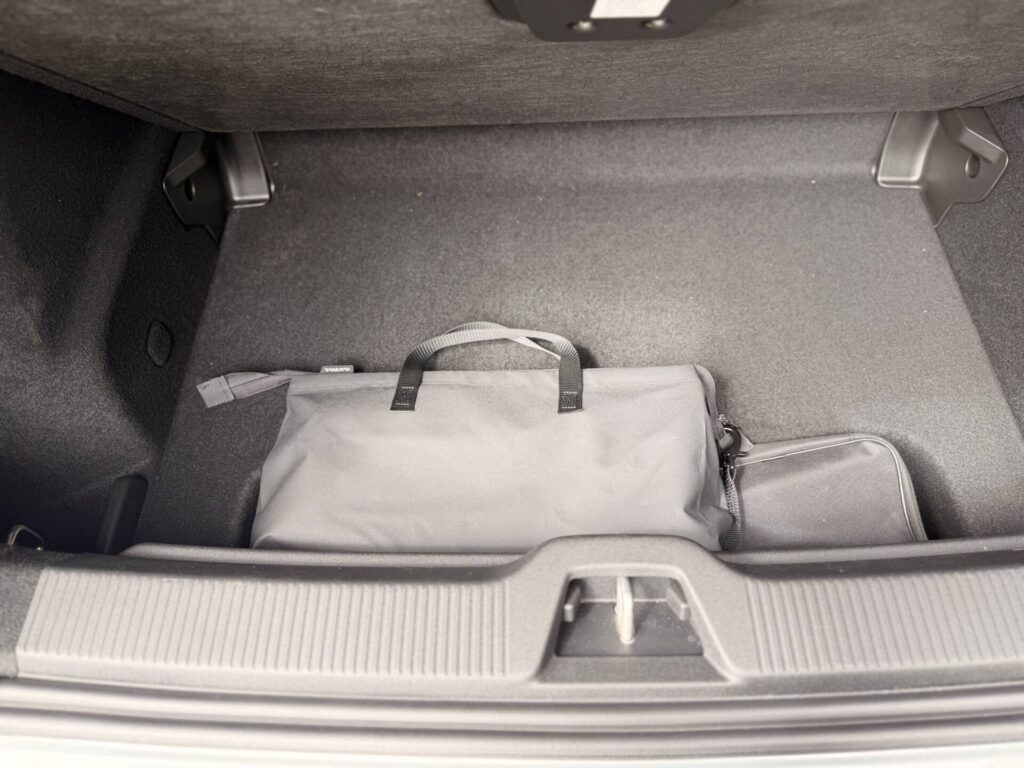 The boot is a good size and accessed via a powered tailgate. There’s no spare but some underfloor storage is always welcome. I think the loading lip is probably fine in a normal EX30, but a bit high in the Cross Country, especially for a car this size.